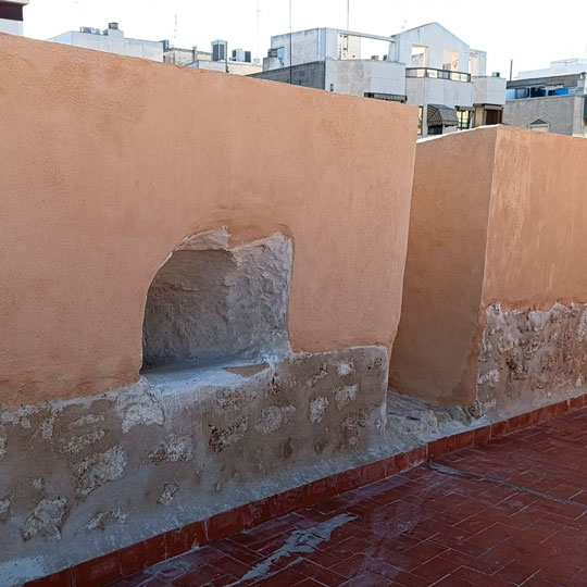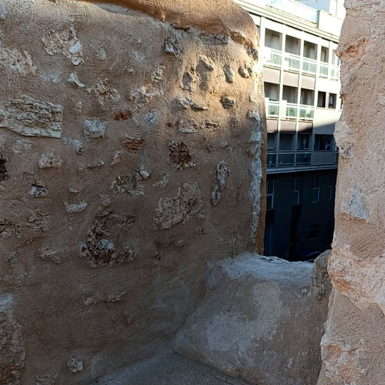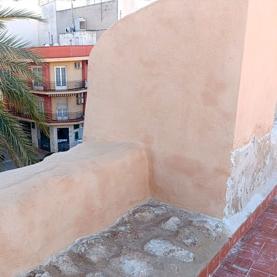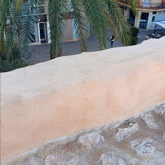 Últimos trabajos en la muralla del castillo. En estos días se está aplicando el color definitivo a los paramentos de la muralla sobre los que se ha intervenido. En esta obra se ha recuperado parte de la estructura original del almenado del castillo y han salido a la luz elementos arquitectónicos que no teníamos documentados como troneras. Se han eliminado los numerosos elementos impropios, resuelto patologías y reordenado las infraestructuras de carácter moderno en la medida de lo posible. También se ha procedido a sellar juntas de dilatación existentes en el pavimento con el fin de evitar posibles filtraciones en el bien protegido. Además, se han realizado sendas rampas que han posibilitado una total accesibilidad de todas las puertas de acceso al museo y a la capilla de la Virgen de Loreto.